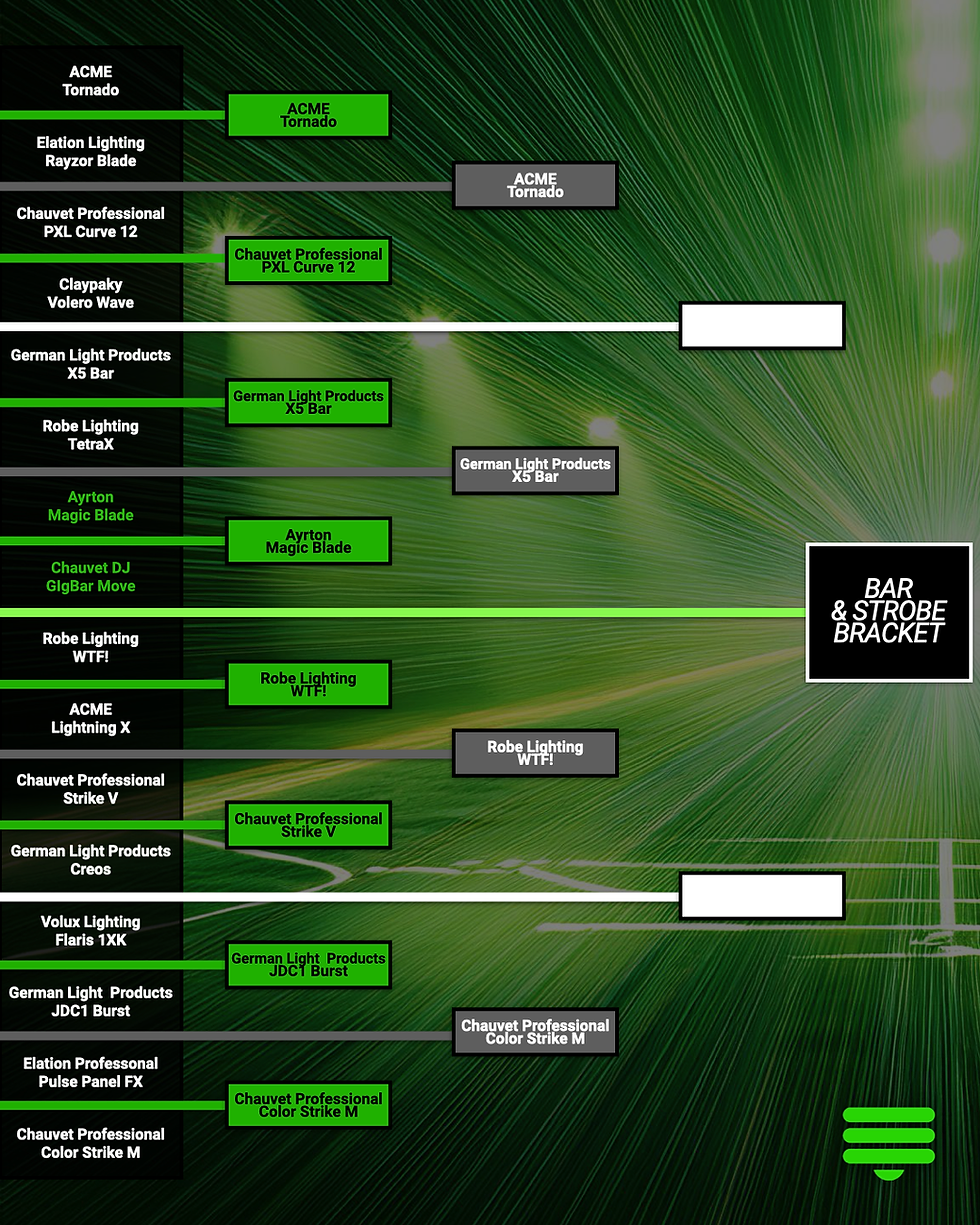 Round Two’s tightest matchup came down to the wire between GLP JDC1 Burst and CHAUVET Professional ColorStrike M. When the dust settled, ColorStrike M edged it out 53% to 47%, winning by just over one hundred votes. It was the definition of a nail-biter and a reminder that every vote counts in the Madness.