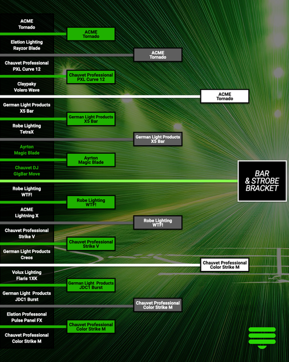 Each day, like clockwork, matchups light up on our Instagram story @LimeLightWired. It's like the Super Bowl of Lighting, but with more watts and fewer tackles. Stagehands and lighting designers, directors and programmers everywhere unite to cast their votes for the fixtures that make their hearts glow. Divided into four sections leaning into the regions of March Madness, we've got spot & profile fixtures, wash fixtures, beam fixtures, and strobe and bar fixtures ready to duke it out under the spotlight.
